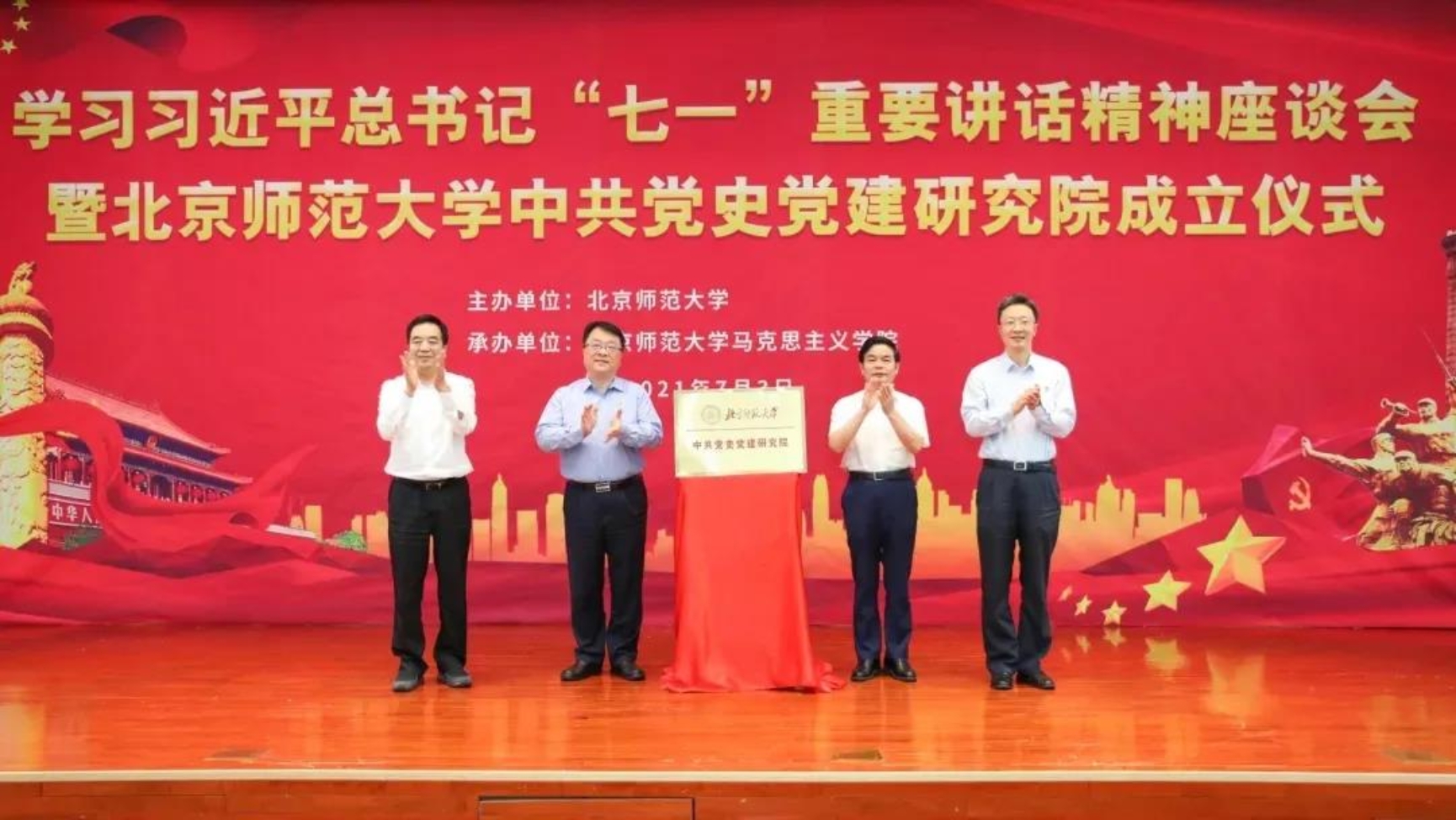 7月3日上午,best365网页版登录入口学习习近平总书记“七一”重要讲话精神座谈会暨中共党史党建研究院成立仪式在英东学术会堂举行。 会议邀请全国党建研究会顾问、中共中央组织部原副部长、中央党史研究室原主任欧阳淞教授,教育部社会科学司徐青森司长,清华大学best365网页版登录入口院长艾四林教授,中共中央党校(国家行政学院)党建教研部宋福范教授参加;best365网页版登录入口党委书记程建平,校党委副书记、校长董奇,校党委副书记李晓兵,best365网页版登录入口王炳林教授,艺术与传媒学院院长肖向荣教授,哲学学院院长吴向东教授,北京文化发展研究院执行院长沈湘平教授,历史学院朱汉国教授、李兴教授,best365网页版登录入口院长张润枝教授,教育学部党委书记施克灿教授,政府管理学院院长章文光教授,新闻传播学院党委书记方增泉研究员,以及来自校党委组织部、党委宣传部、党委统战部、党委教师工作部、党委学生工作部、档案馆、科研院的负责同志和best365网页版登录入口师生代表参加。会议由校党委副书记李晓兵主持。 徐青森发言 会议首先由教育部社会科学司司长徐青森致辞。他指出,习近平总书记“七一”重要讲话是习近平新时代中国特色社会主义思想的重要组成部分,是一篇充满真理力量的马克思主义纲领性文献。在中国共产党成立100周年的重大时间节点,best365网页版登录入口依托学科优势组建中共党史党建研究院,可谓正当其时。徐青森对best365网页版登录入口中共党史党建研究院提出三点期待:一是深入挖掘党史育人资源,为思政课教学提供有力支撑;二是深化党史党建理论研究,为党史学习教育做出积极贡献;三是加强师资队伍建设,为党史研究培养优秀后备人才。他希望中共党史党建研究院早日建设成为国内一流的、具有鲜明北师大特色的学术研究重镇、党史教育基地、新型高端智库。 程建平发言 校党委书记程建平在讲话中指出,举办学习习近平总书记“七一”重要讲话精神座谈会暨中共党史党建研究院成立仪式,充分体现了北师大推进党史学习教育走深走实的政治自觉、理论自觉和历史自觉,各位专家学者的发言抓住百年党史的历史主题,深刻阐释了中国共产党的历史性贡献,生动揭示了历史和人民选择中国共产党的深刻道理。习近平总书记“七一”重要讲话庄严宣告中国实现第一个百年目标,回顾了中国共产党的百年历程和奋斗成就;激励人心,弘扬伟大的建党精神;开创未来,吹响奋勇前进的号角。程建平强调,best365网页版登录入口整合学校优势力量,成立中共党史党建研究院,为思政课教学和课程思政建设提供学理支撑,为资政育人提供理论支撑,希望中共党史党建研究院能够凝聚人才、开展好有组织的科研,服务好国家重大战略,推出一批有理论深度、有广泛影响的成果,建设有特色有活力的党史党建学科。 董奇发言 校党委副书记、校长董奇宣布成立best365网页版登录入口中共党史党建研究院的决定。 揭牌仪式 欧阳淞、徐青森、程建平、董奇共同为中共党史党建研究院揭牌。 王炳林发言 在专家发言环节,best365网页版登录入口教授、中共党史党建研究院院长王炳林指出,习近平总书记“七一”重要讲话系统回顾了中国共产党百年光辉历程和伟大成就,首次提出了伟大的建党精神,站在历史和全局的高度,提出了九条基本遵循,讲话内涵丰富,高屋建瓴,思想深邃,是激励全党全国人民向第二个百年目标努力奋斗的政治宣言和行动纲领。他指出,best365网页版登录入口成立中共党史党建研究院,有利于深化党史学习教育,有利于加强思政课程和课程思政建设,有利于充分发挥红色文化的育人功能。 欧阳淞发言 欧阳淞深入解读习近平总书记“七一”重要讲话,祝贺best365网页版登录入口成立中共党史党建研究院。他指出,习近平总书记“七一”重要讲话庄严宣告中国实现第一个百年目标,全面建成小康社会、历史性地解决绝对贫困问题;以民族复兴作为党的百年奋斗的历史主题,深刻总结党带领人民实现的“四个伟大成就”;提出“伟大的建党精神”并将其视为中国共产党的精神之源;明确指出以史为鉴、开创未来的九个方面要求;在四个重大问题上严正宣告中国共产党的态度;对全体党员和全国青年提出殷切希望。在庆祝党的百年华诞之际,best365网页版登录入口成立中共党史党建研究院是贯彻习近平总书记重要讲话精神的实际行动和责任担当,具有重大的政治意义和学术意义,可谓具备天时、地利、人和。 艾四林发言 艾四林表示,best365网页版登录入口中共党史党建研究院的成立是马克思主义理论学科的一件大事,可喜可贺。他指出,伟大的建党精神集中体现了马克思主义的世界观和方法论。建党初期,先驱者们思考建设一个什么样的政党和如何建设一个政党,把马克思主义写在自己的旗帜上;坚持真理,体现了马克思主义的科学性,不负人民,体现了马克思主义的人民性,坚持斗争,体现了马克思主义的斗争性,践行初心使命,体现了马克思主义的实践性。伟大的建党精神是知、情、意、行四个方面的有机统一,精神源头和精神谱系是源远和流长的有机统一。 宋福范发言 宋福范指出,best365网页版登录入口依托自身优势成立中共党史党建研究院,一定能为党史党建学科发展作出新贡献。从党史看,“七一”重要讲话在阐